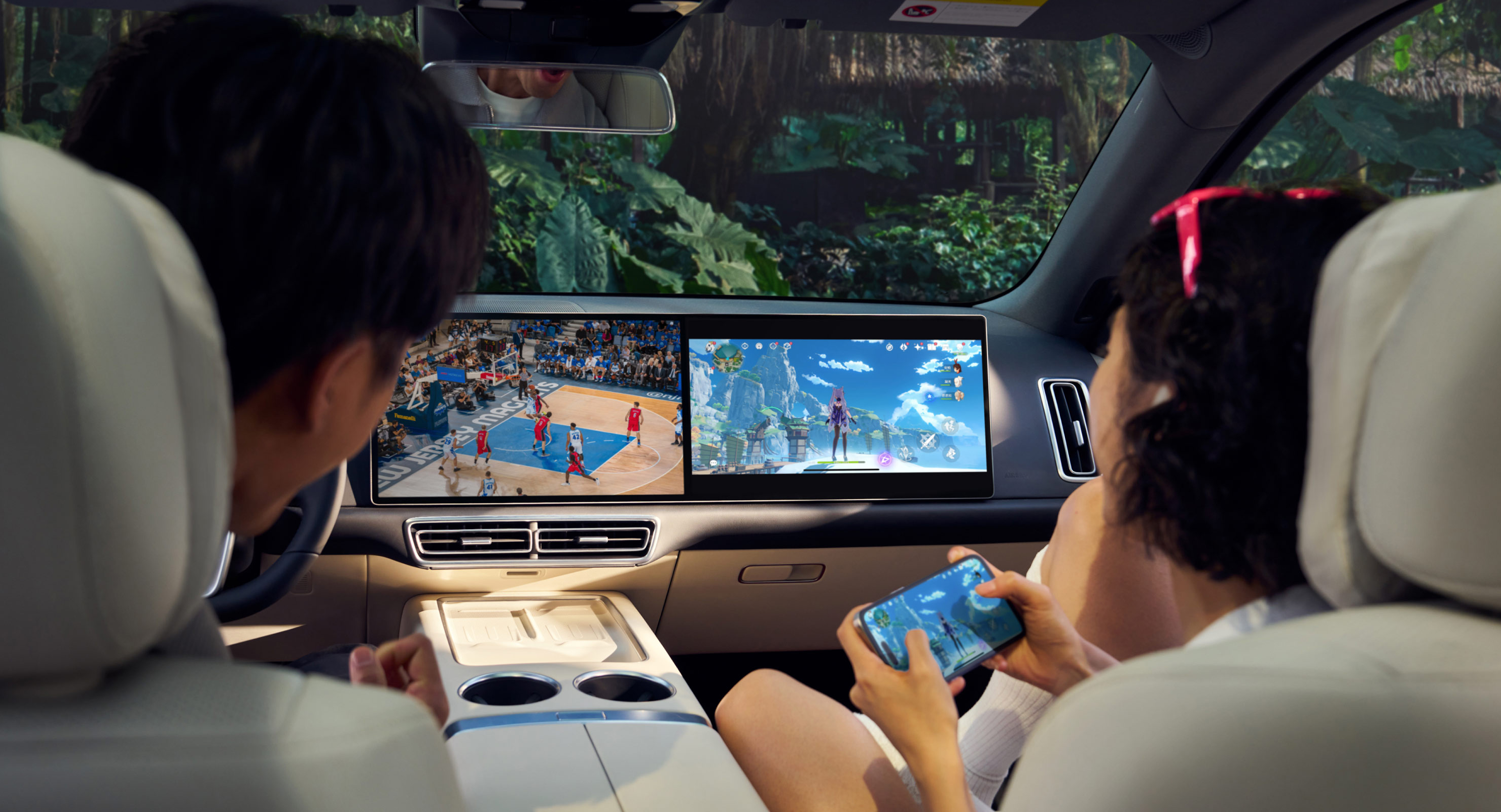 Кластер из двух экранов на передней панели, сенсорная панель с дисплеем на руле, проекционный дисплей (HUD) и широкоформатный экран для пассажиров сзади - ничто не ускользнет от внимания водителя, а пассажиры не заскучают в дороге.